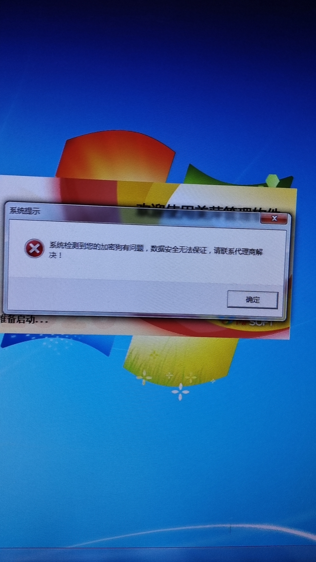 打开美萍软件,出现这个提示(如图),怎么回事?加密狗拔掉重新插也是显示这个,加密狗插上灯不亮 是不是加密狗坏了