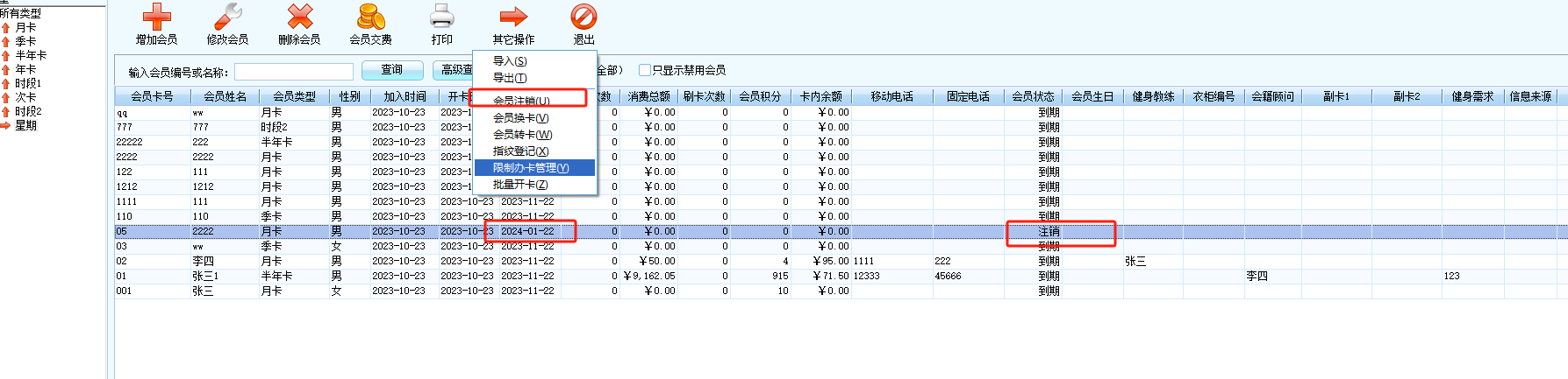 可以会员注销,注销后,该会员将不能再次在店内以会员身份消费了。如图示: