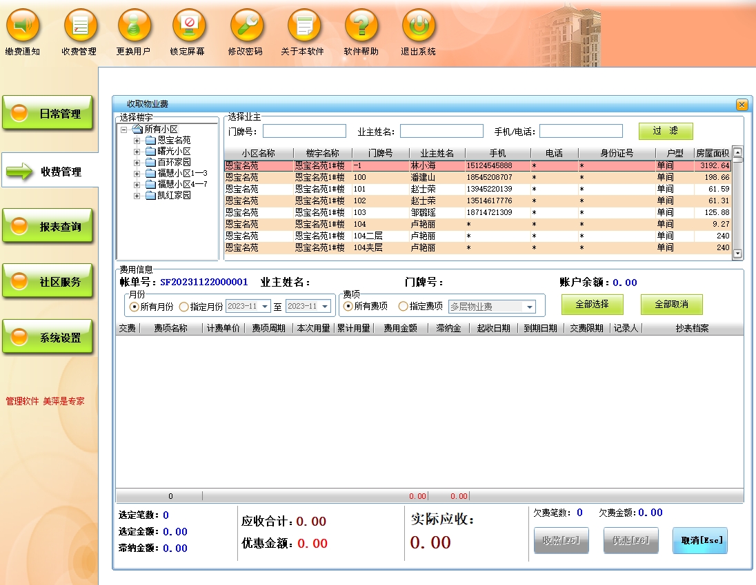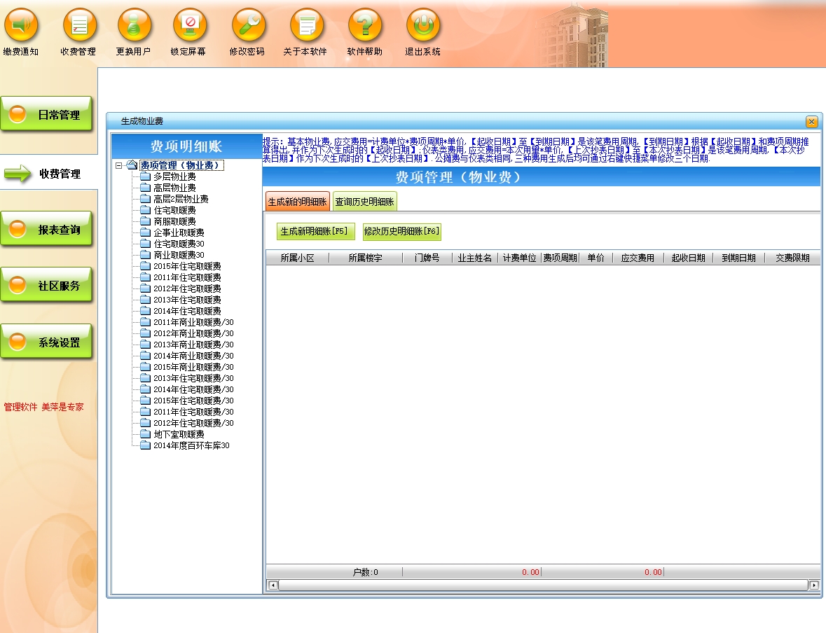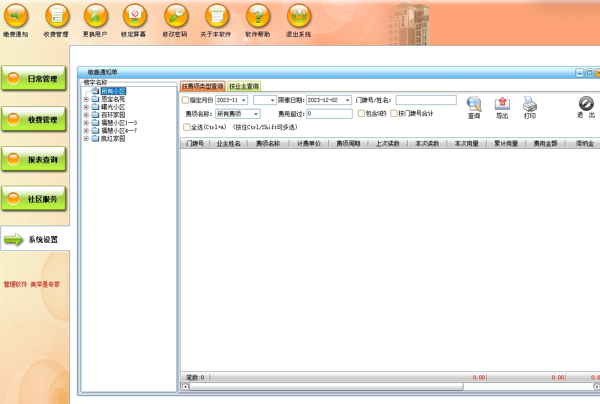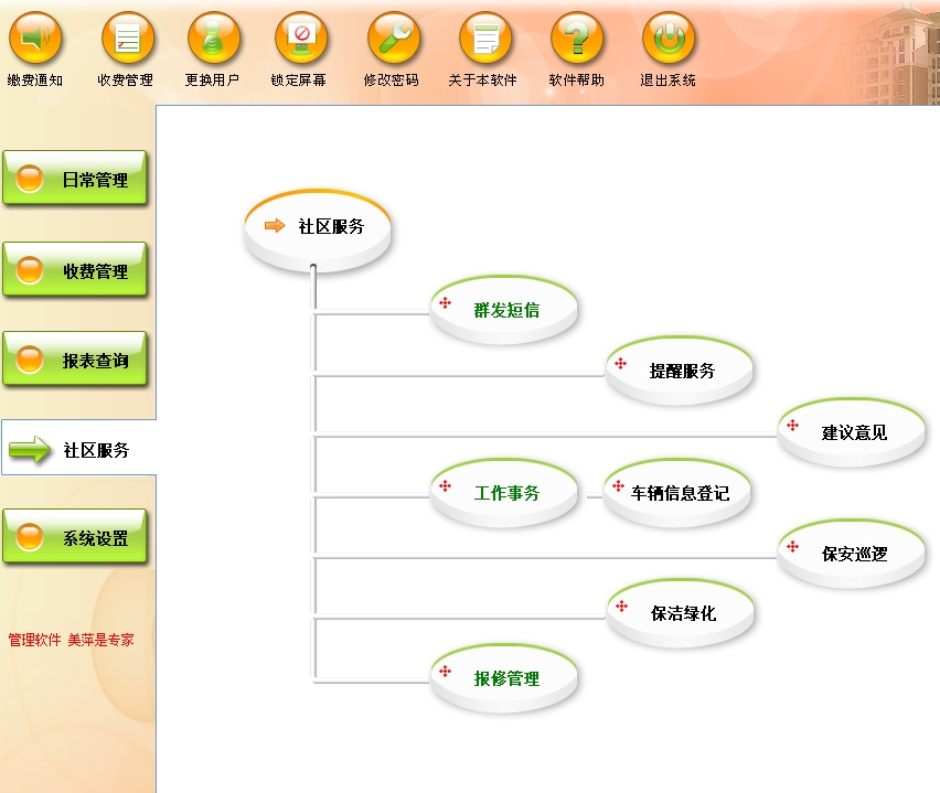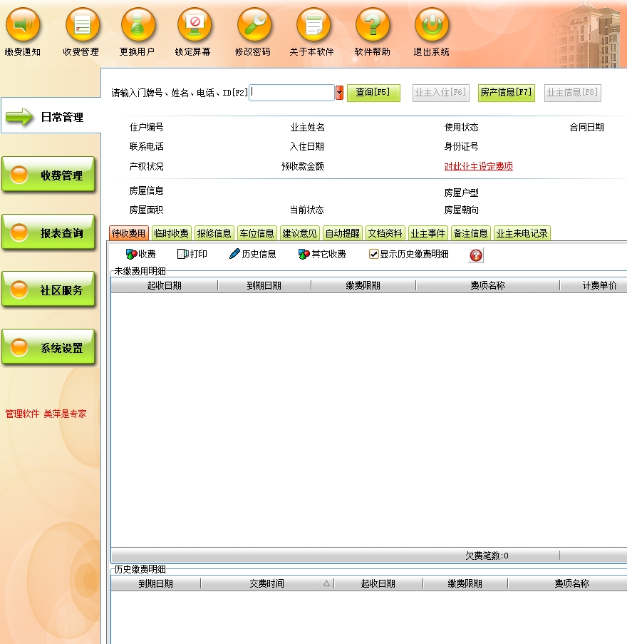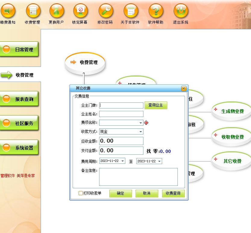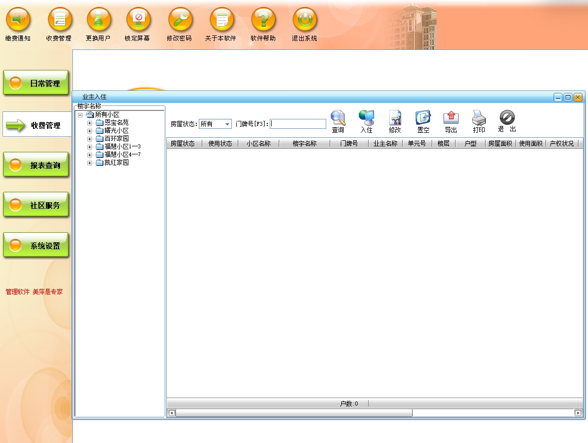 美萍物业管理系统(软件)的主要功能: