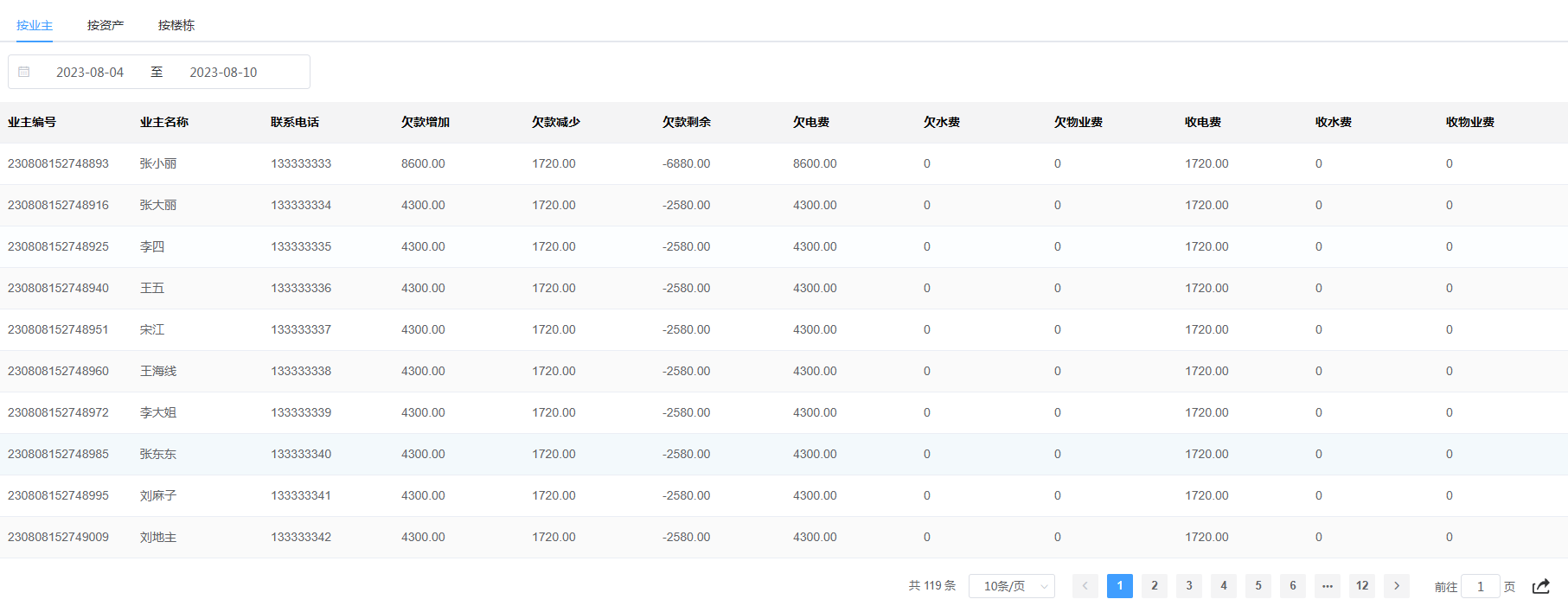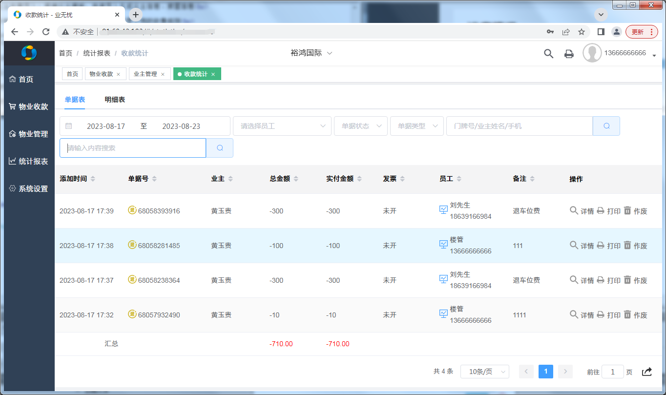 5:物业收费管理-强大的统计报表可以对房产的业务入住情况,收缴情况全面掌握。