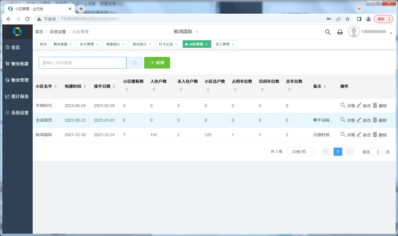 第三:业无忧软件具有多小区管理(官网首页直接切换小区信息)。