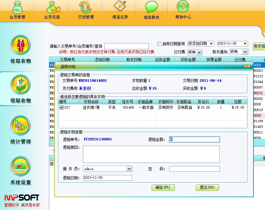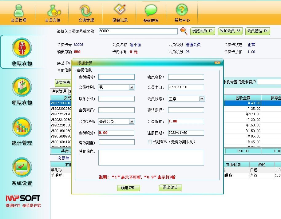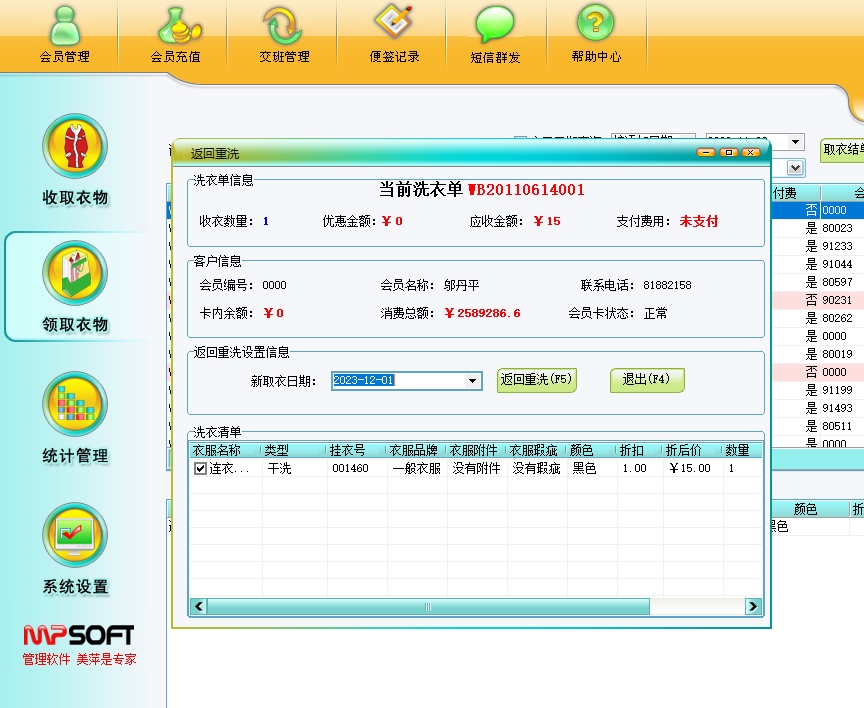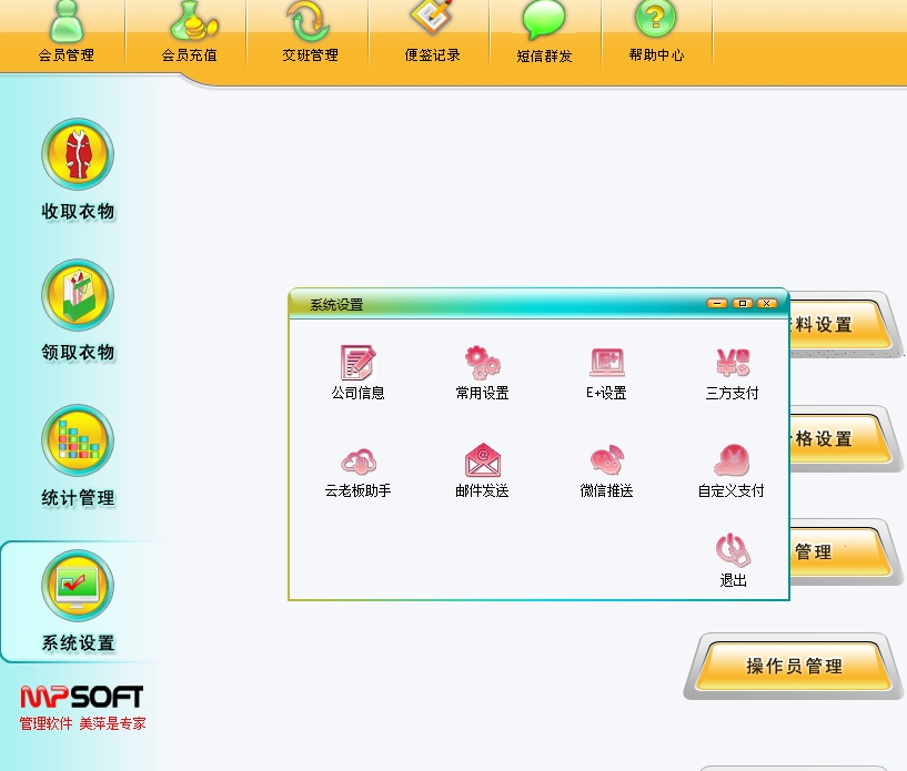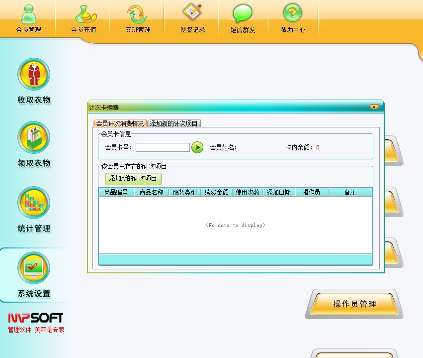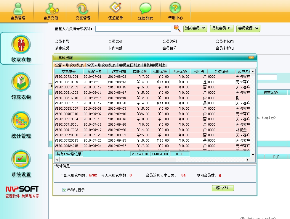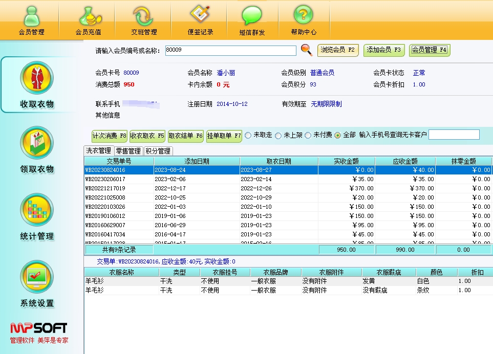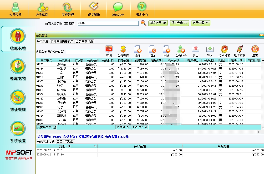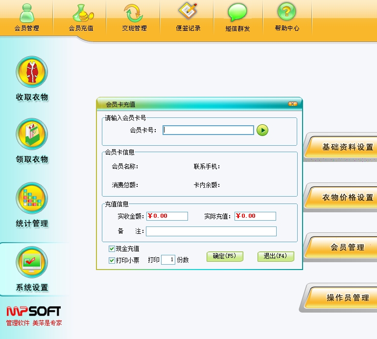 美萍干洗店管理软件帮助干洗店轻松管理会员充值、衣物存取、财务报表等