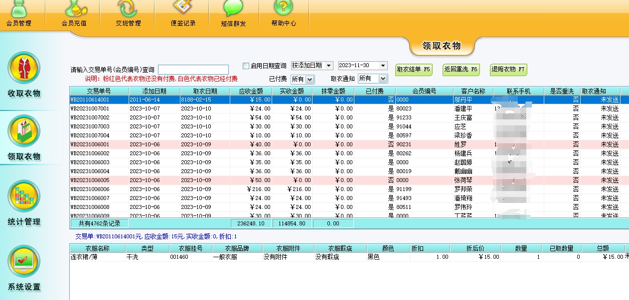 第十一:干洗店(洗衣店)软件领取衣物功能:客户凭洗衣收据,来取走已洗好的衣物。