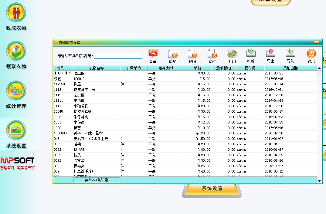美萍干洗店(洗衣店)管理系统(软件)的主要功能: