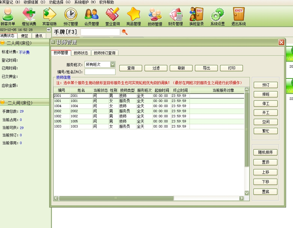 第八:足疗软件具有技师管理功能,包括技师排班、技师提成设置、技师提成查询、定时提醒。