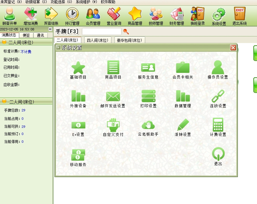 第四:足疗软件系统设置,包括有:备份恢复数据库、操作员设置、其它设置。