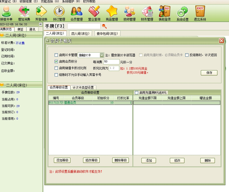 第二:足疗软件可以管理会员的基本信息和对会员卡的操作如:会员卡续费,会员卡挂失等,支持会员折扣卡和储值卡,可以根据自己的需要设置不同的优惠方式,灵活简单。