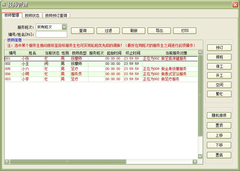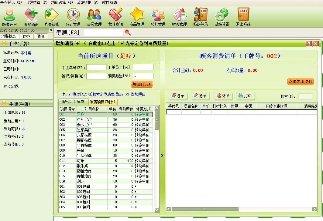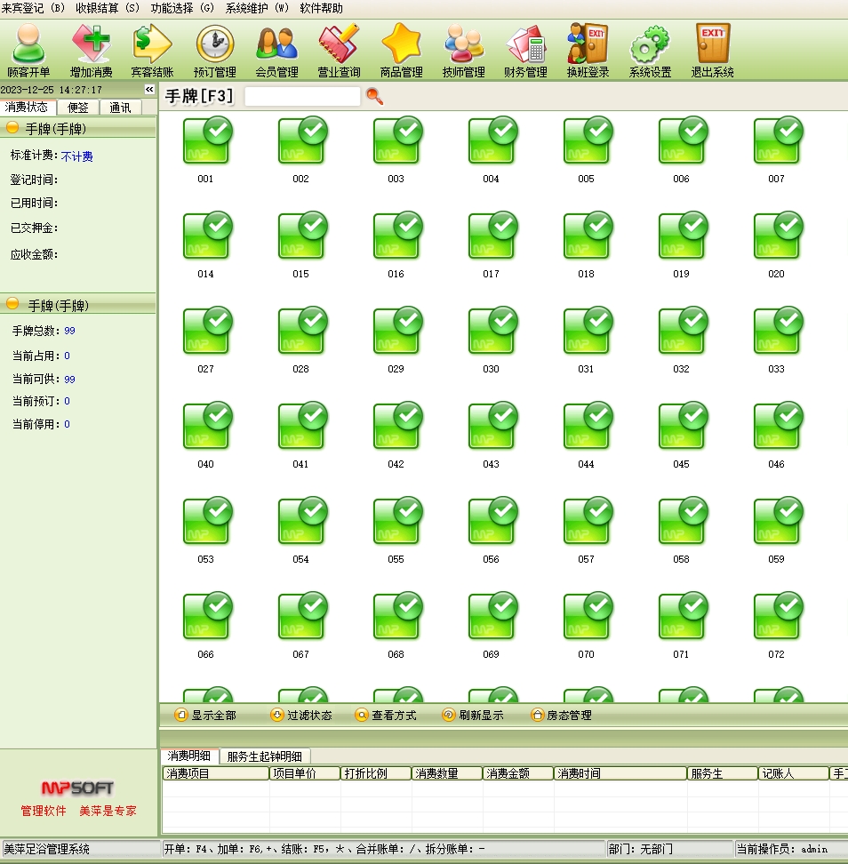 美萍足浴管理系统(软件)的主要功能: