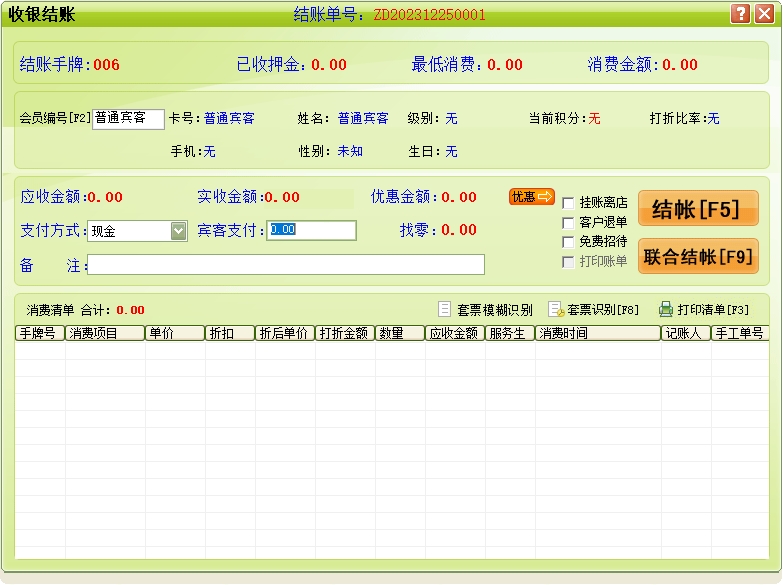 第十三:足浴软件支持对帐单进行会员打折、全场打折、任意打折、单项特殊打折设置等多种打折方式。