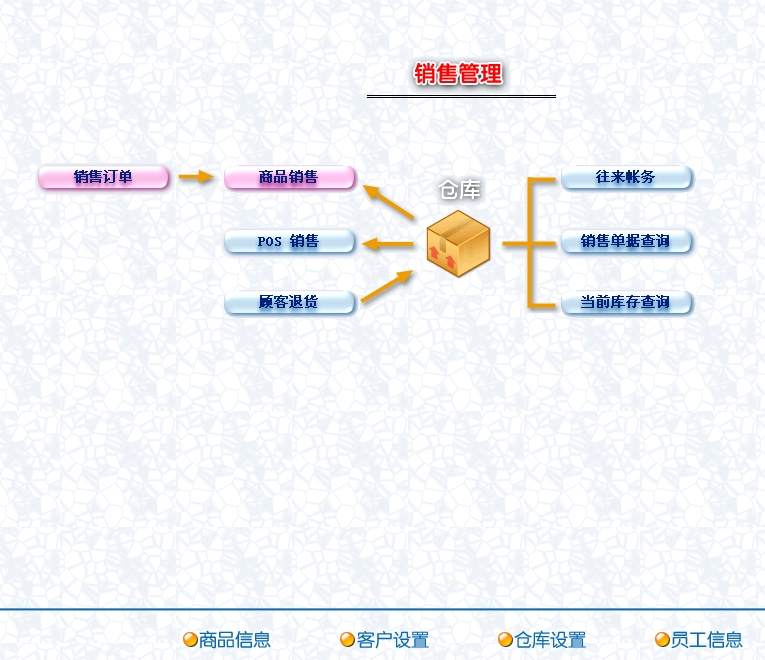 第二:工业进销存软件可以业务管理:进行商品业务,顾客退货,销/退单据和当前库存查询,与客户的往来帐务。