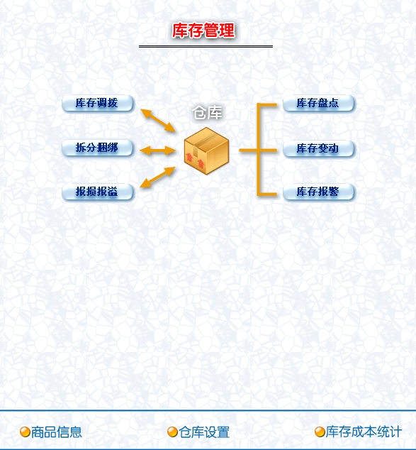 第八:工业进销存软件支持库存管理:包括库存之间商品调拔,商品的报损溢,强大的库存盘点功能,库存商品报警查询。