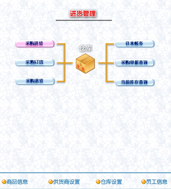 第一:工业进销存软件支持进货管理:进行商品采购入库,采购退货,进/退单据和当前库存查询,与供货商的往来帐务。