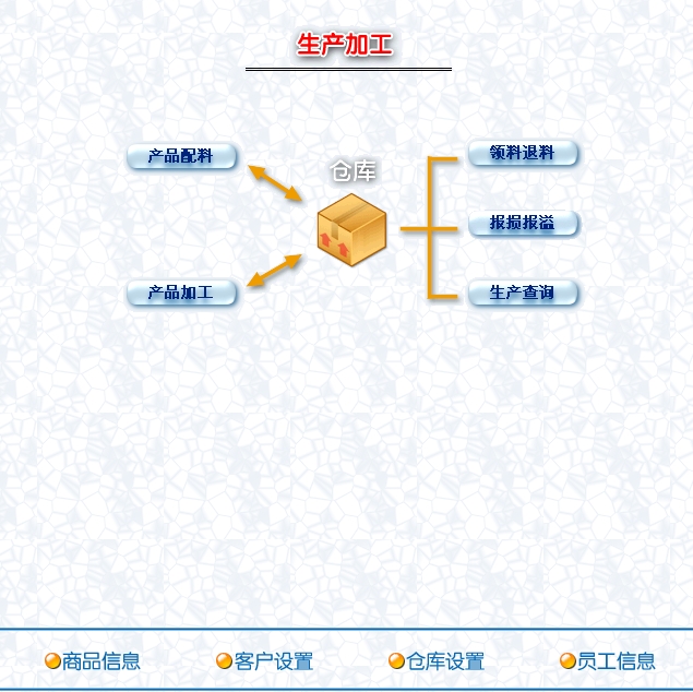 第三:工业进销存软件提供生产加工:进行成品、半成品、原材料的组合配料领退料,报损报溢和生产,对生产情况的查询。