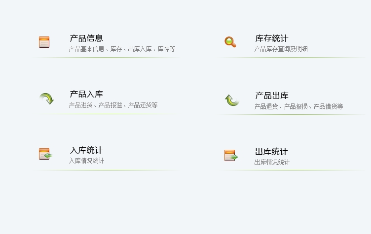 第七:美容院(新版美容院)软件库存管理:支持进货、报损报溢、产品还货等功能,连锁店版支持每店一个仓库,仓库之间可以互相调拨产品。