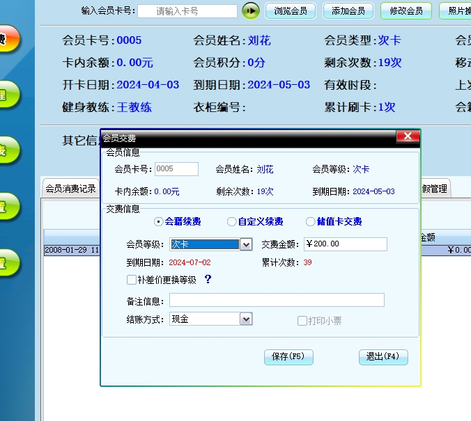 美萍瑜珈管理系统(软件)的主要功能: