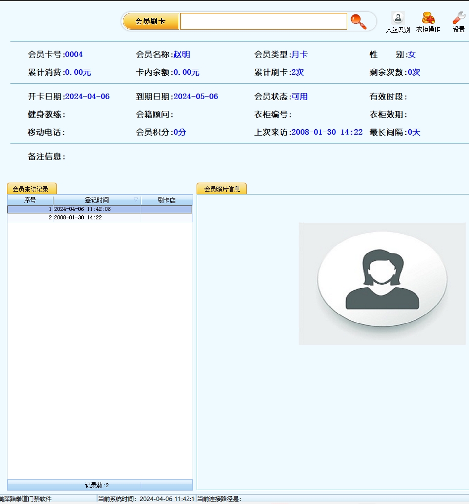 第五步: 也可以打开“前台门禁系统”进行会员刷卡登记。